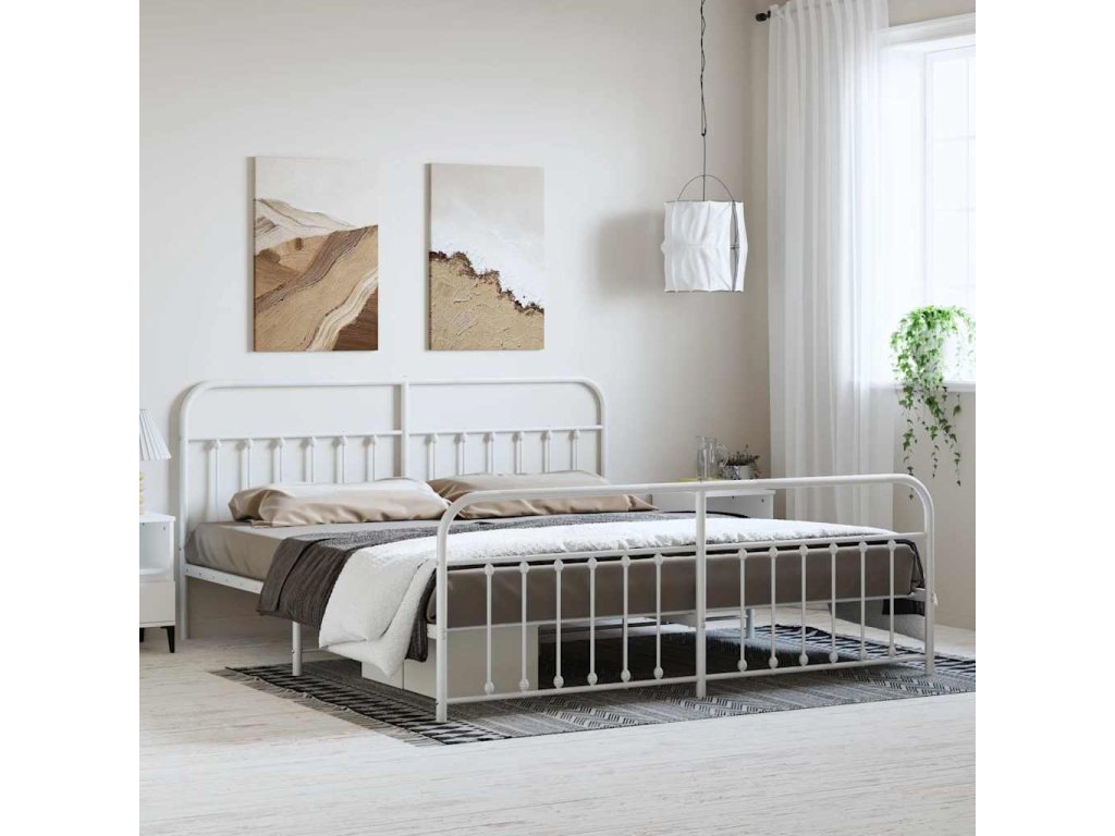 Kovový rám postele s hlavovým a nožním čelem bílý 193 x 203 cm 352651