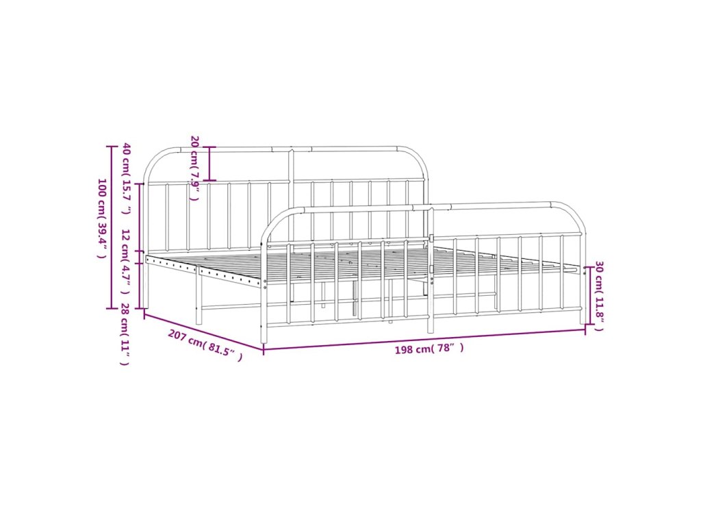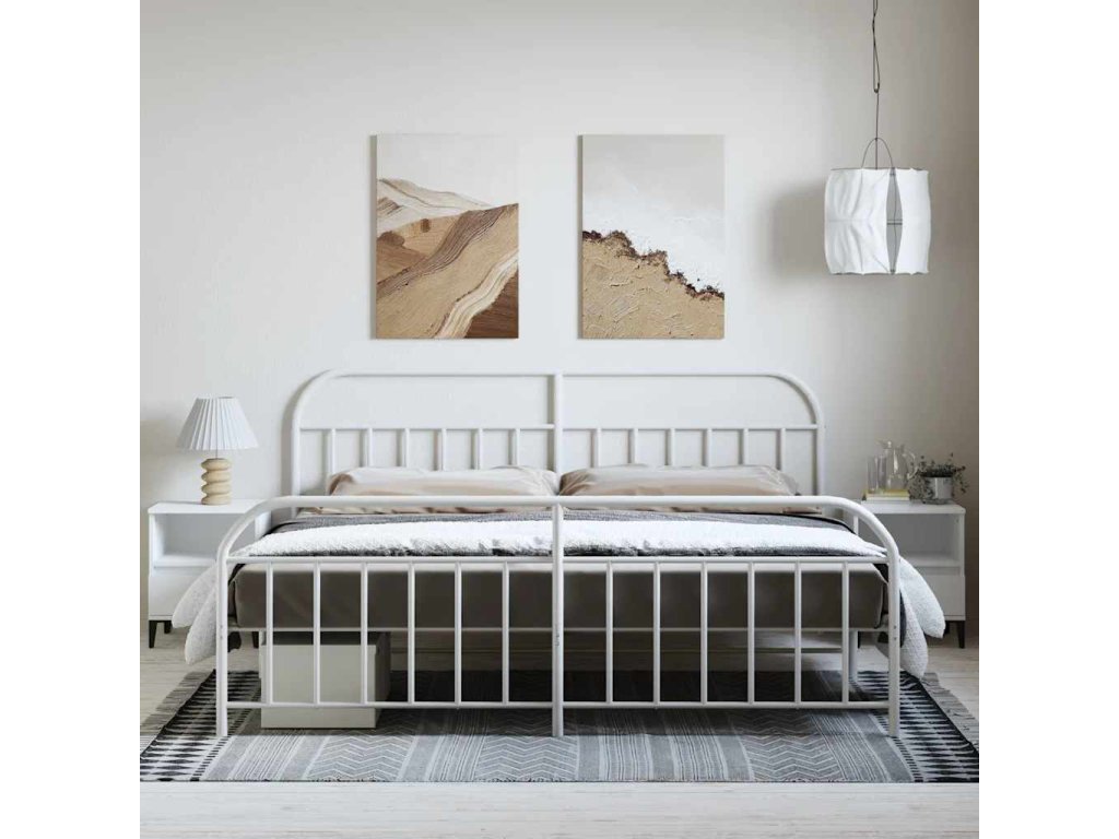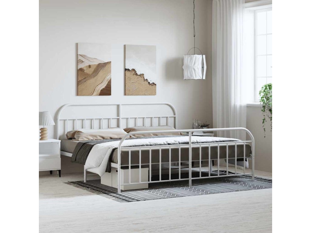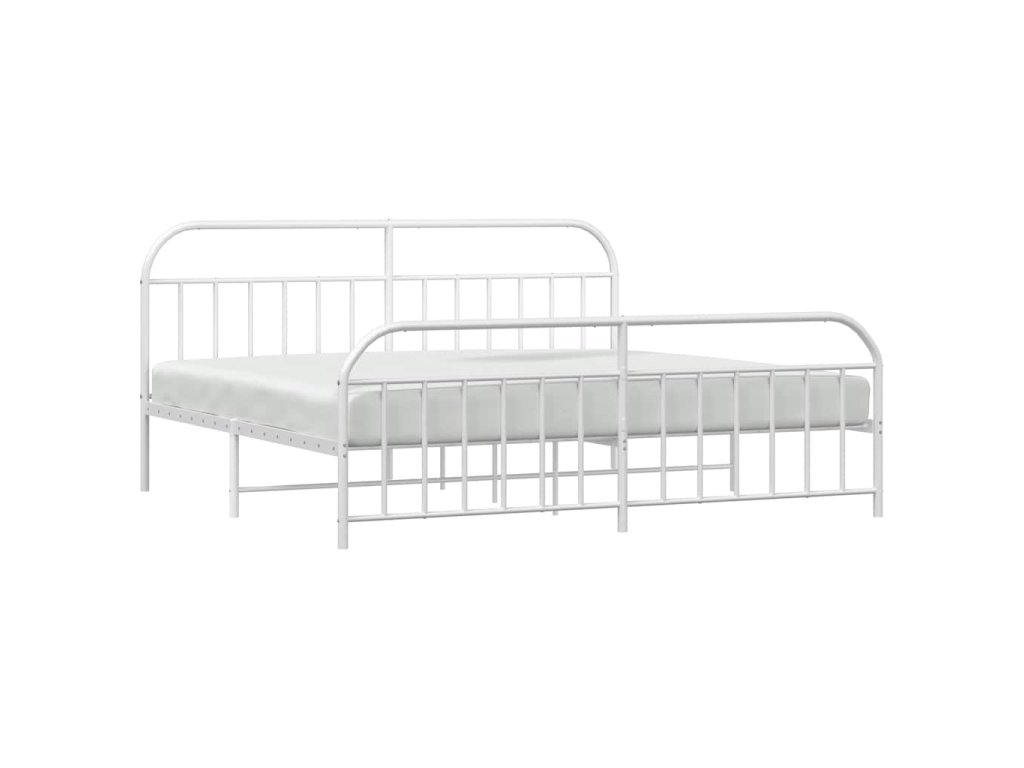 Kovový rám postele s hlavovým a nožním čelem bílý 193 x 203 cm 353708
