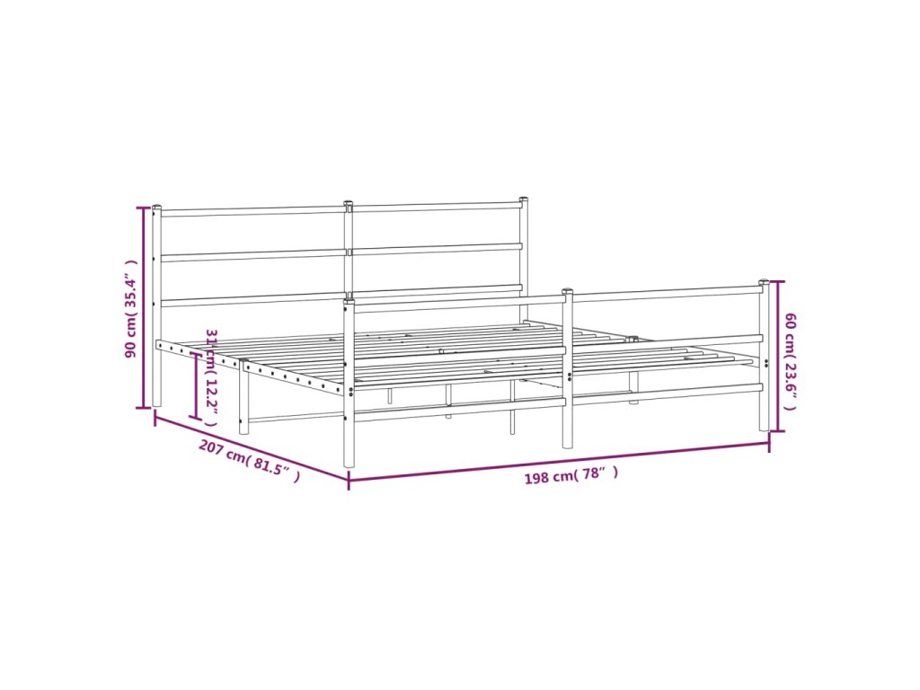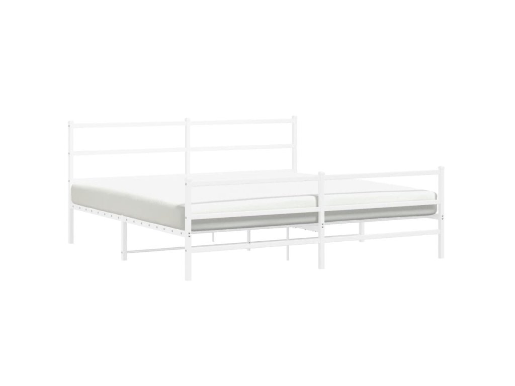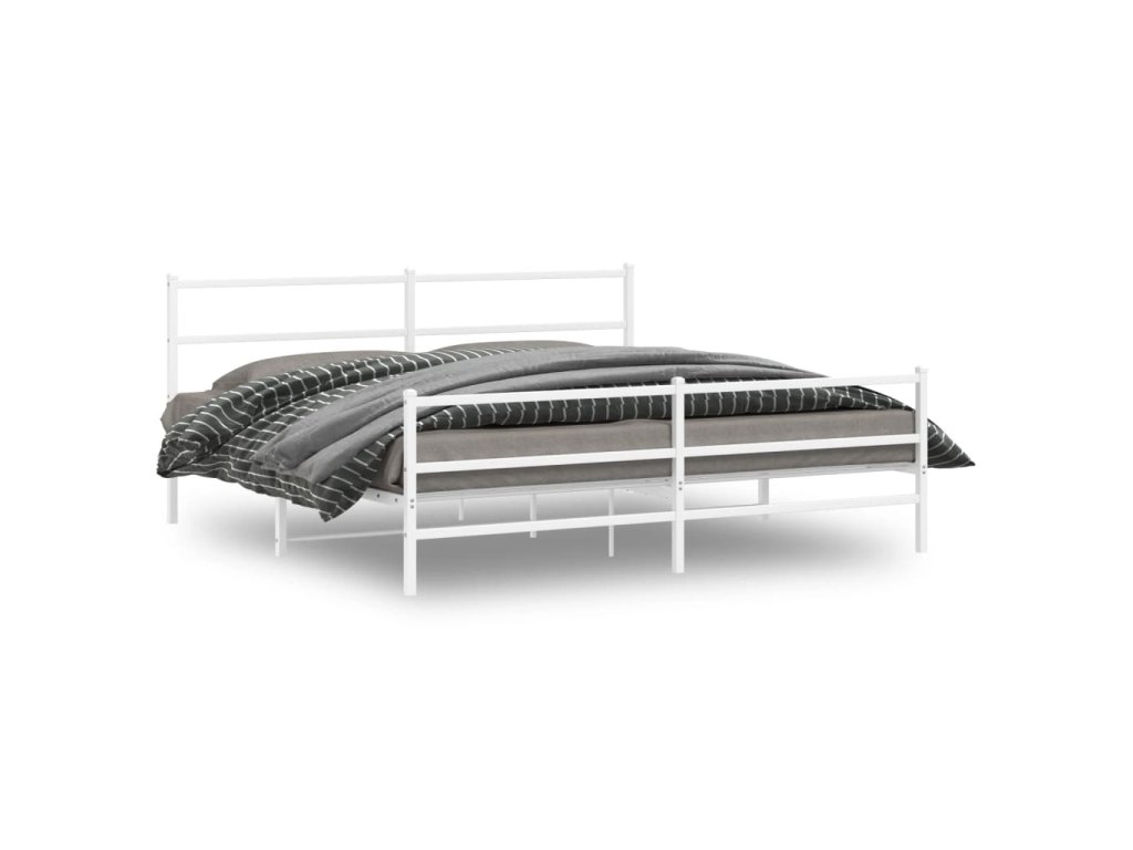 Kovový rám postele s hlavovým a nožním čelem bílý 193 x 203 cm 355438