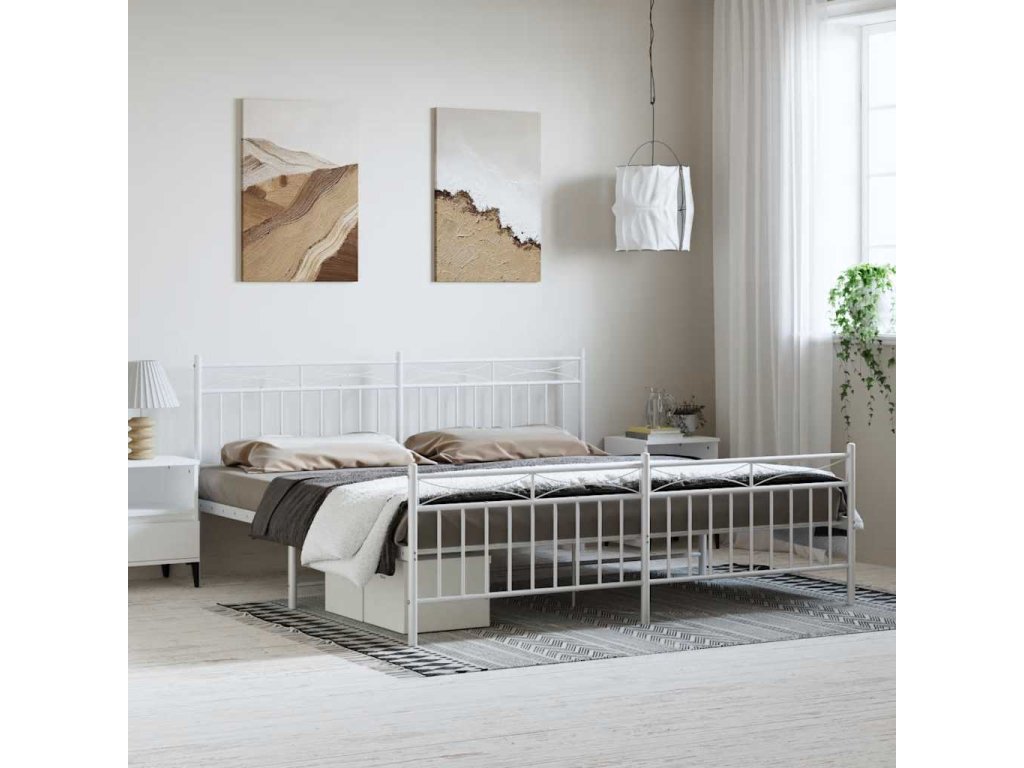 Kovový rám postele s hlavovým a nožním čelem bílý 193 x 203 cm 373764