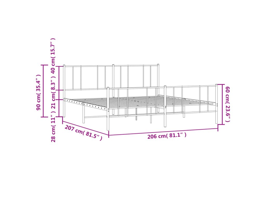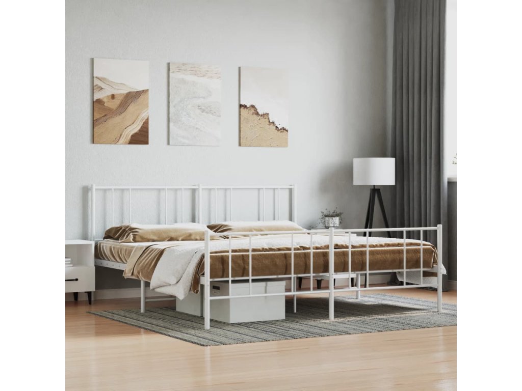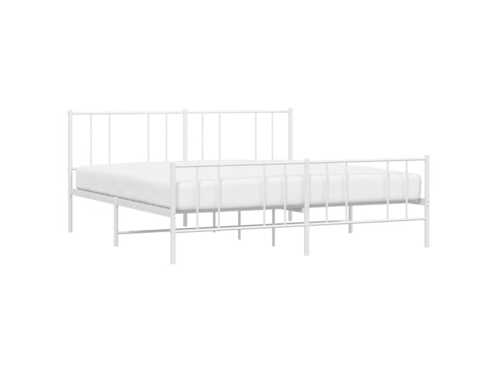 Kovový rám postele s hlavovým a nožním čelem bílý 200 x 200 cm 352554