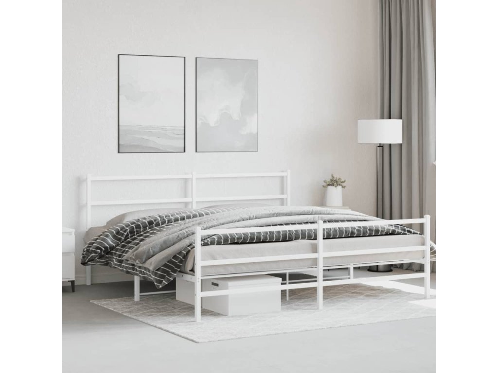 Kovový rám postele s hlavovým a nožním čelem bílý 200 x 200 cm 355439