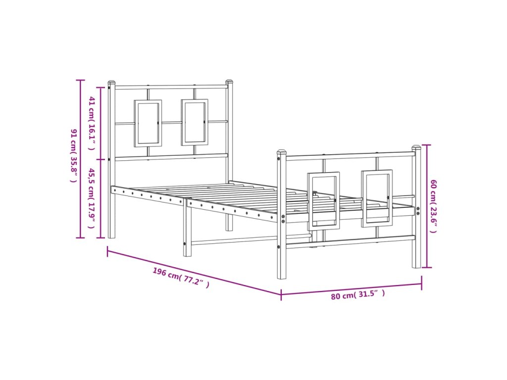 Kovový rám postele s hlavovým a nožním čelem bílý 75 x 190 cm 374298