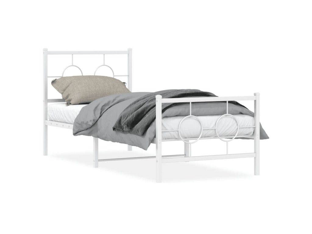 Kovový rám postele s hlavovým a nožním čelem bílý 80 x 200 cm 376284