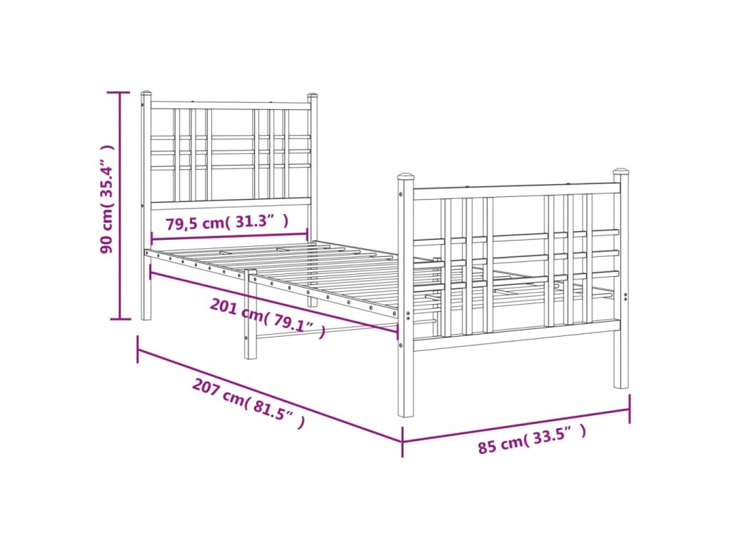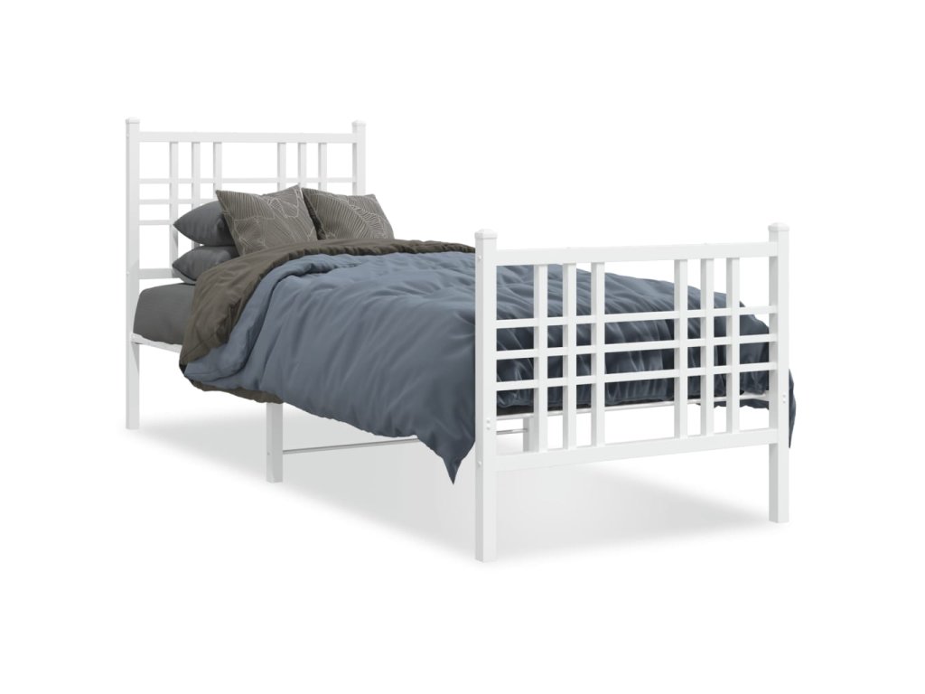 Kovový rám postele s hlavovým a nožním čelem bílý 80 x 200 cm 376382