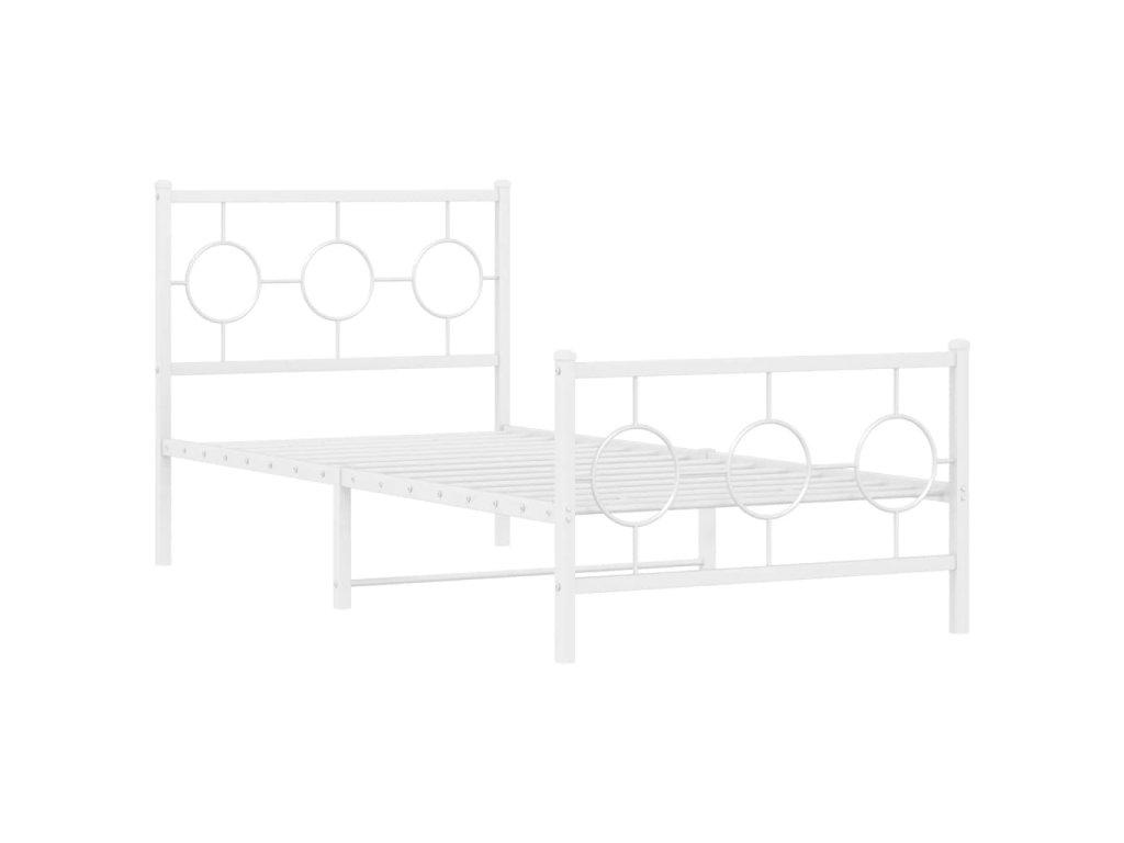 Kovový rám postele s hlavovým a nožním čelem bílý 90 x 190 cm 376285