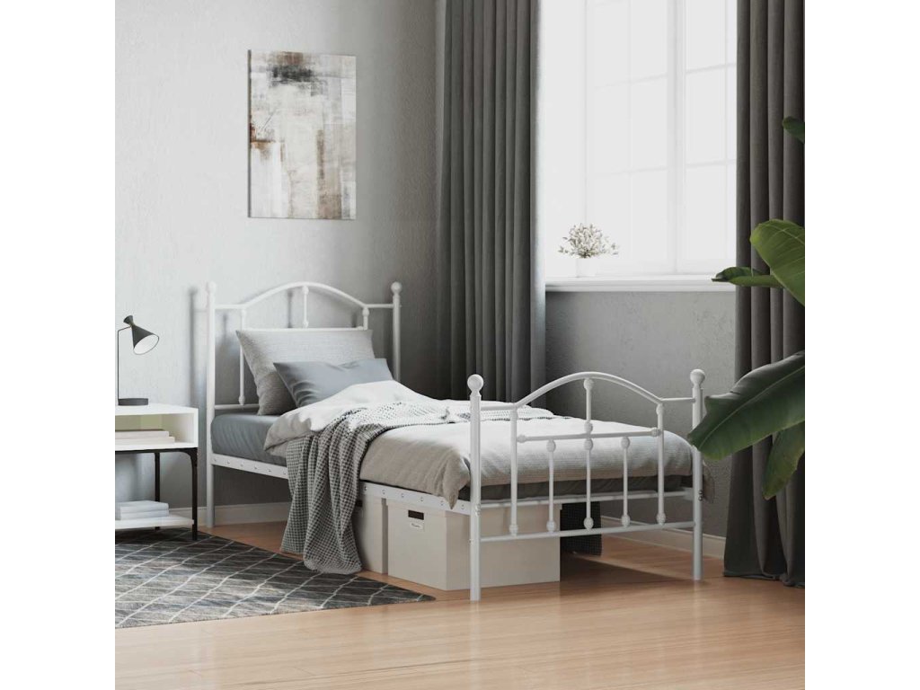 Kovový rám postele s hlavovým a nožním čelem bílý 90 x 200 cm 353499