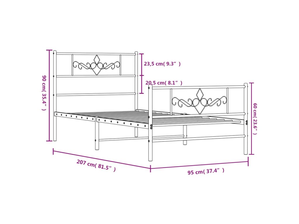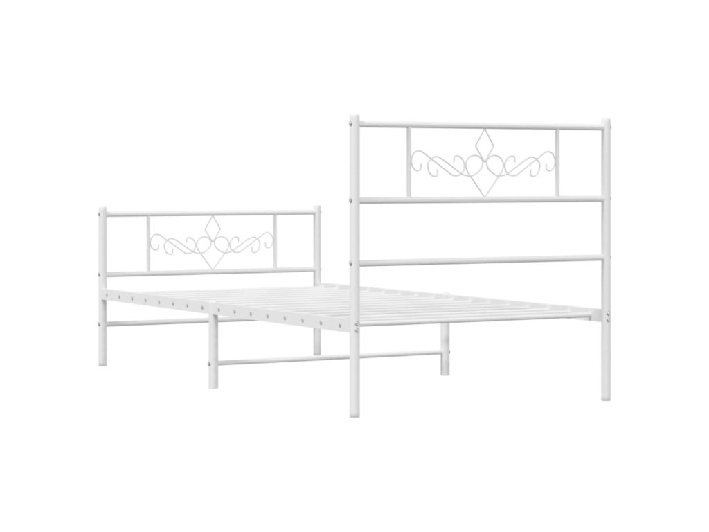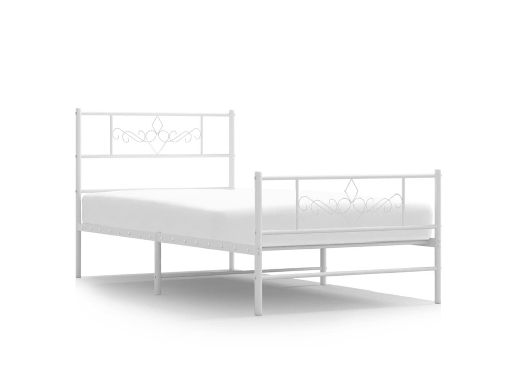 Kovový rám postele s hlavovým a nožním čelem bílý 90 x 200 cm 355327