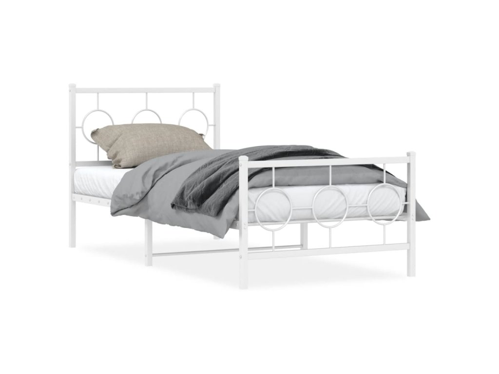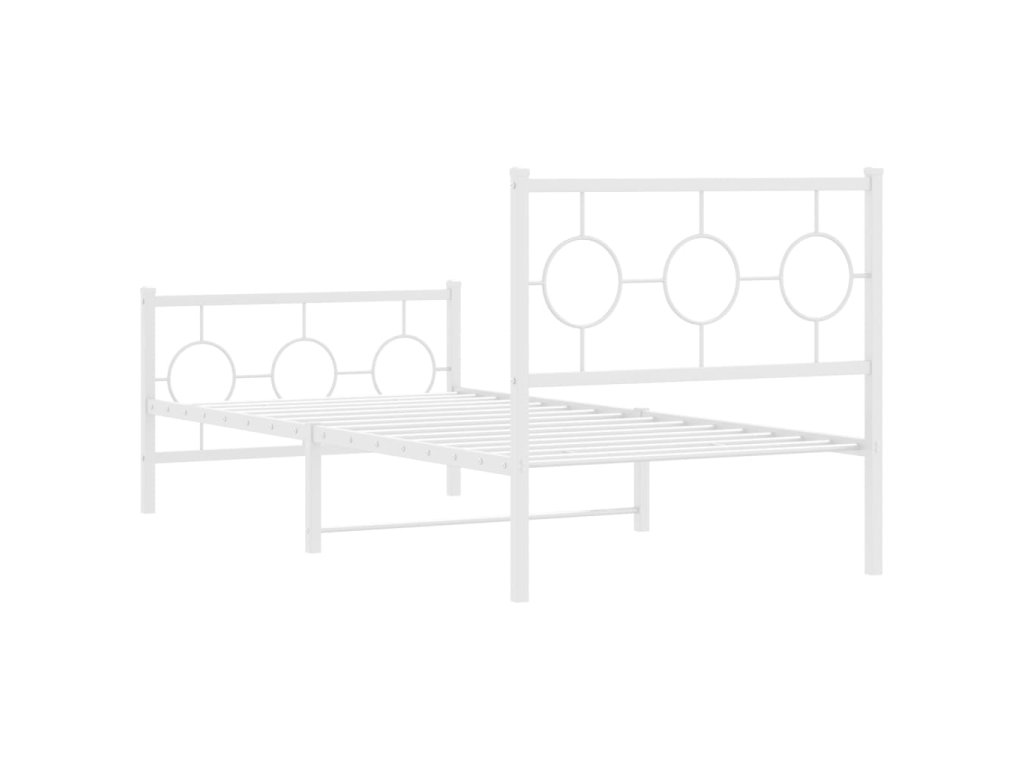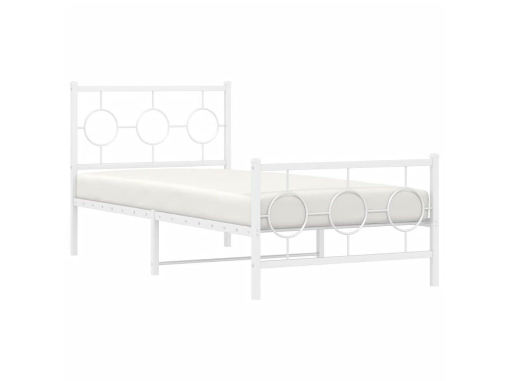 Kovový rám postele s hlavovým a nožním čelem bílý 90 x 200 cm 376286