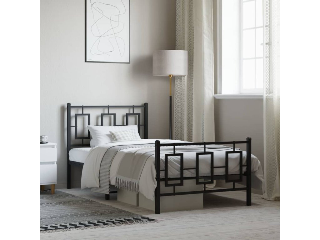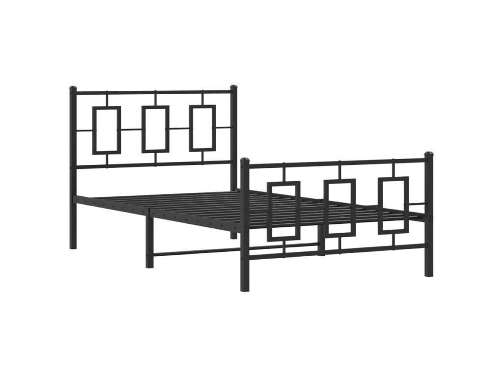 Kovový rám postele s hlavovým a nožním čelem černý 100 x 190 cm 374253