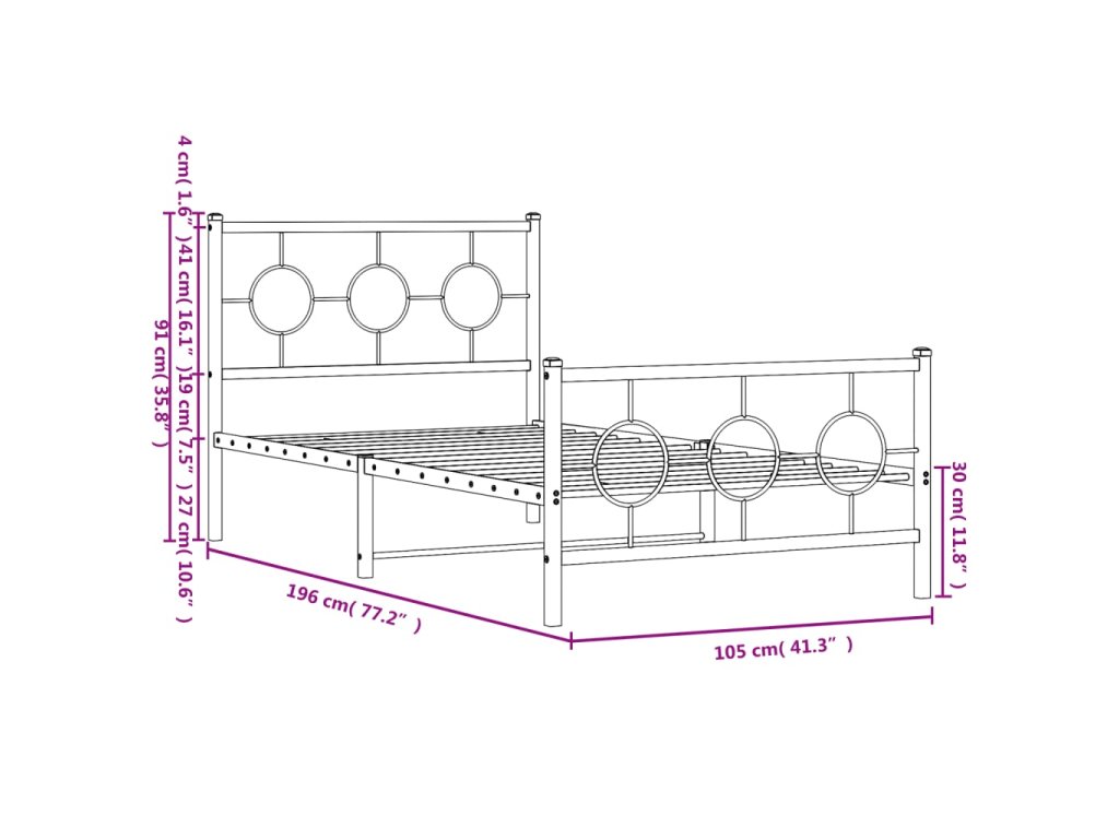 Kovový rám postele s hlavovým a nožním čelem černý 100 x 190 cm 376238