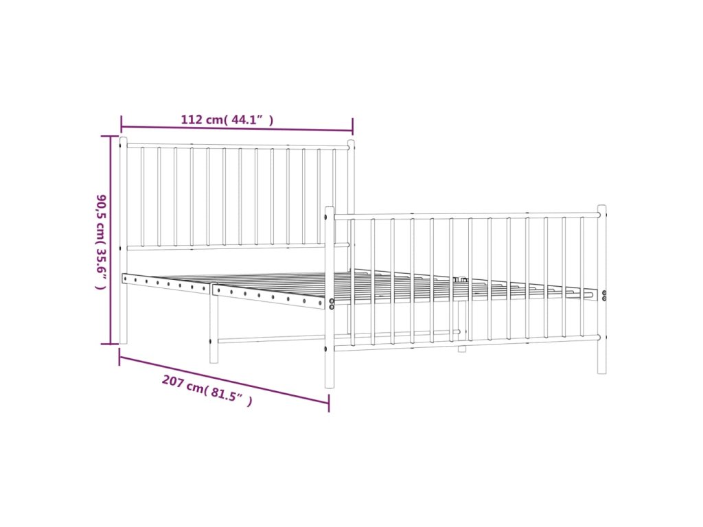 Kovový rám postele s hlavovým a nožním čelem černý 107 x 203 cm 350878