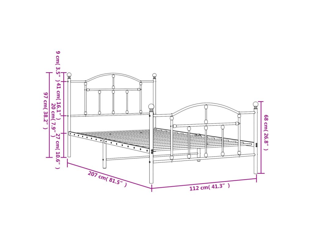 Kovový rám postele s hlavovým a nožním čelem černý 107 x 203 cm 353453