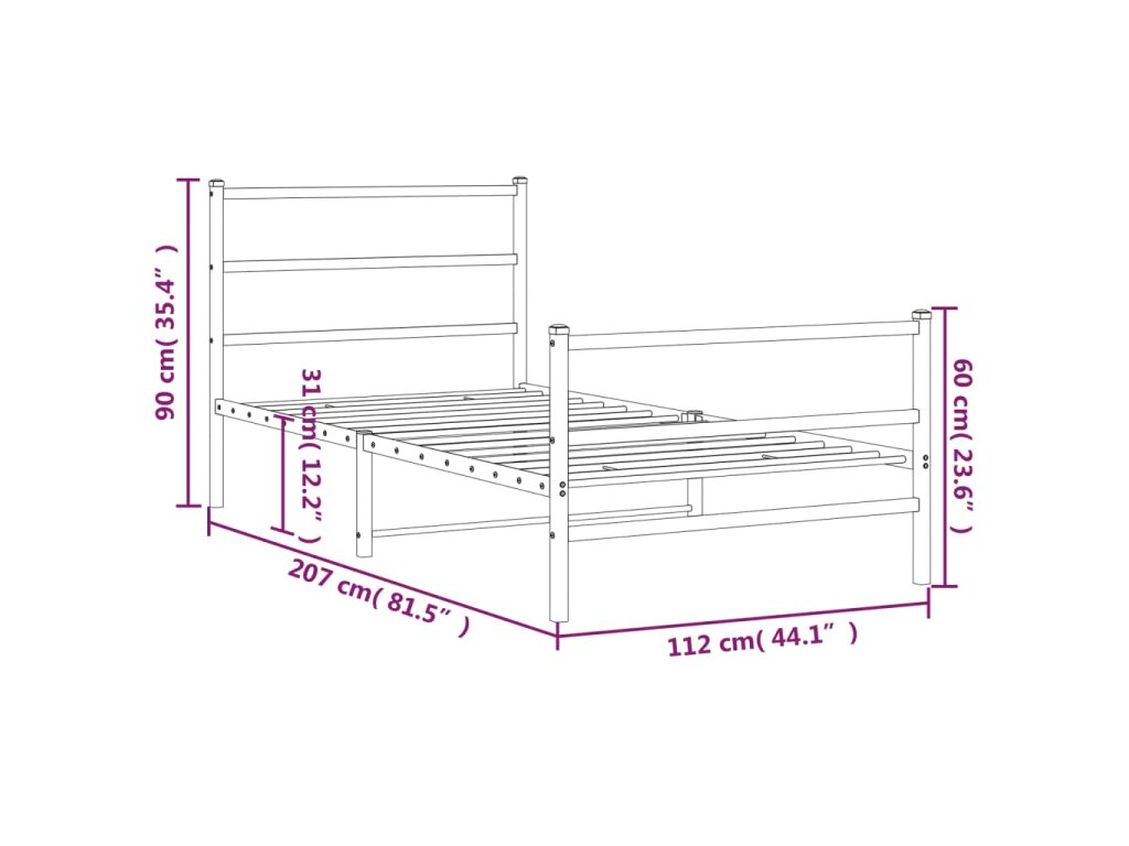Kovový rám postele s hlavovým a nožním čelem černý 107 x 203 cm 355379
