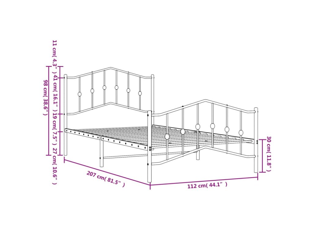 Kovový rám postele s hlavovým a nožním čelem černý 107 x 203 cm 373803