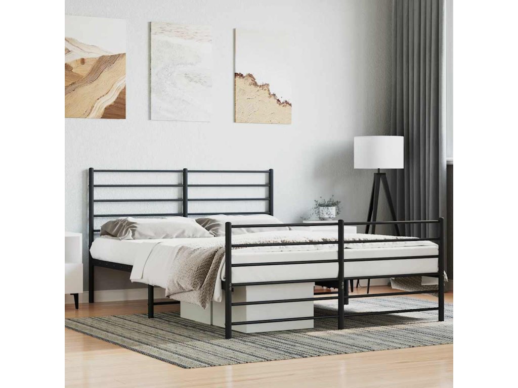 Kovový rám postele s hlavovým a nožním čelem černý 120 x 190 cm 352334