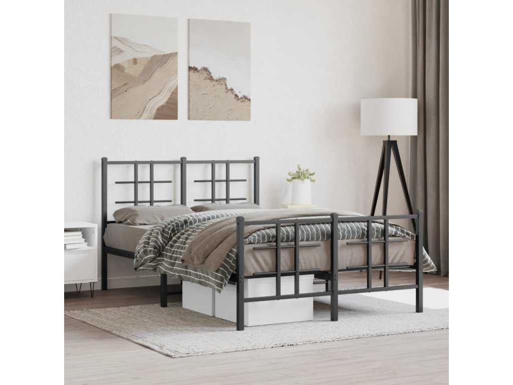 Kovový rám postele s hlavovým a nožním čelem černý 120 x 190 cm 355576