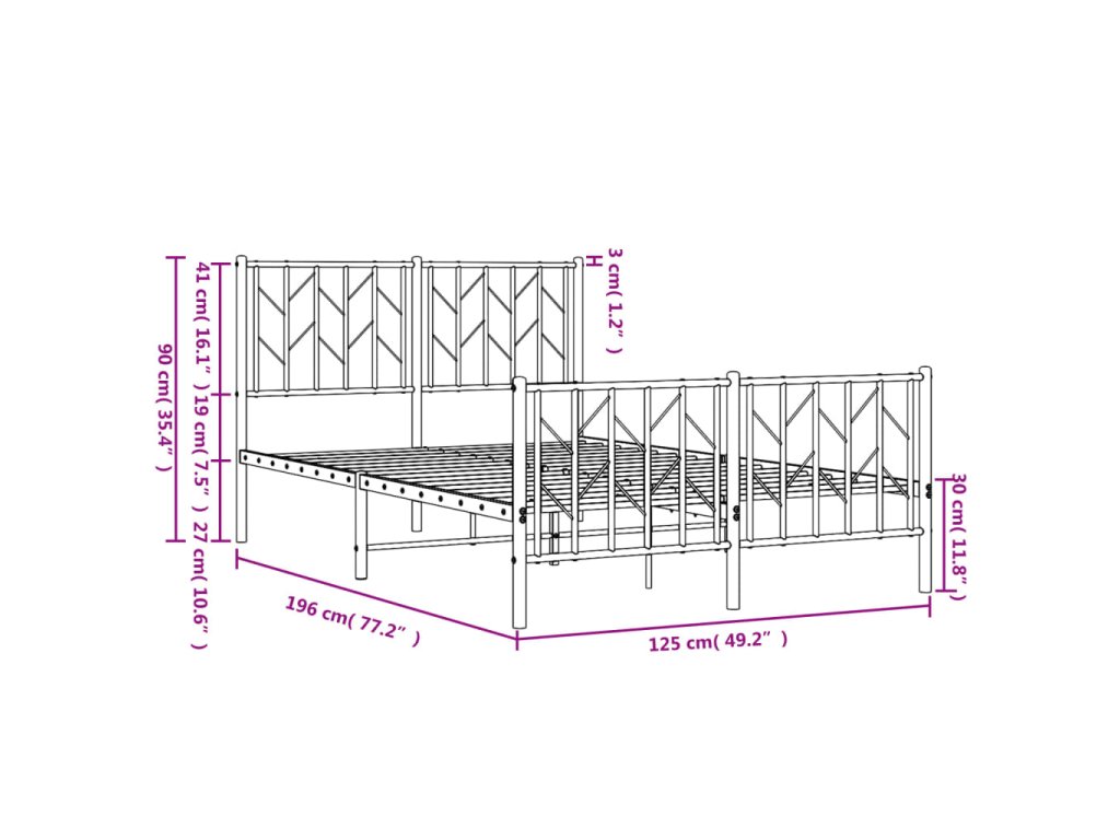 Kovový rám postele s hlavovým a nožním čelem černý 120 x 190 cm 374452