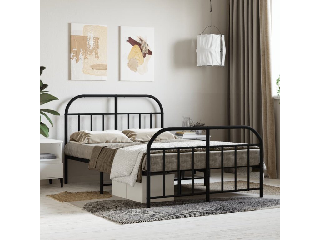 Kovový rám postele s hlavovým a nožním čelem černý 120 x 200 cm 353651