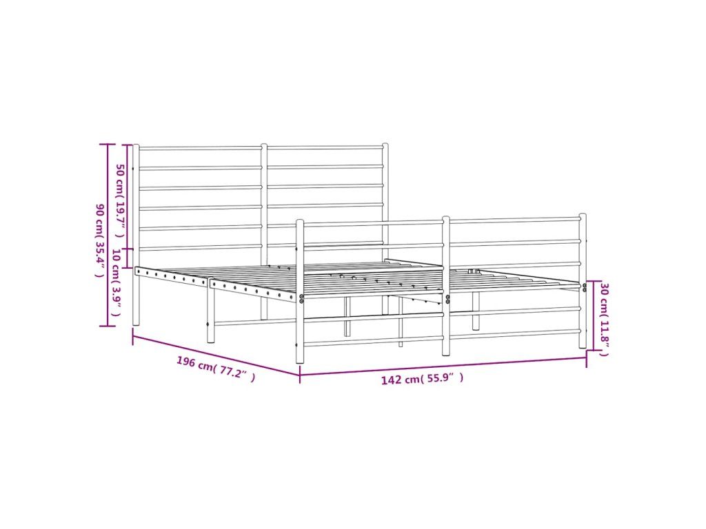 Kovový rám postele s hlavovým a nožním čelem černý 135 x 190 cm 352336