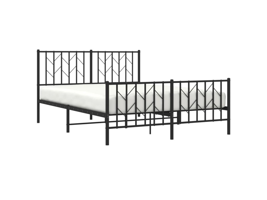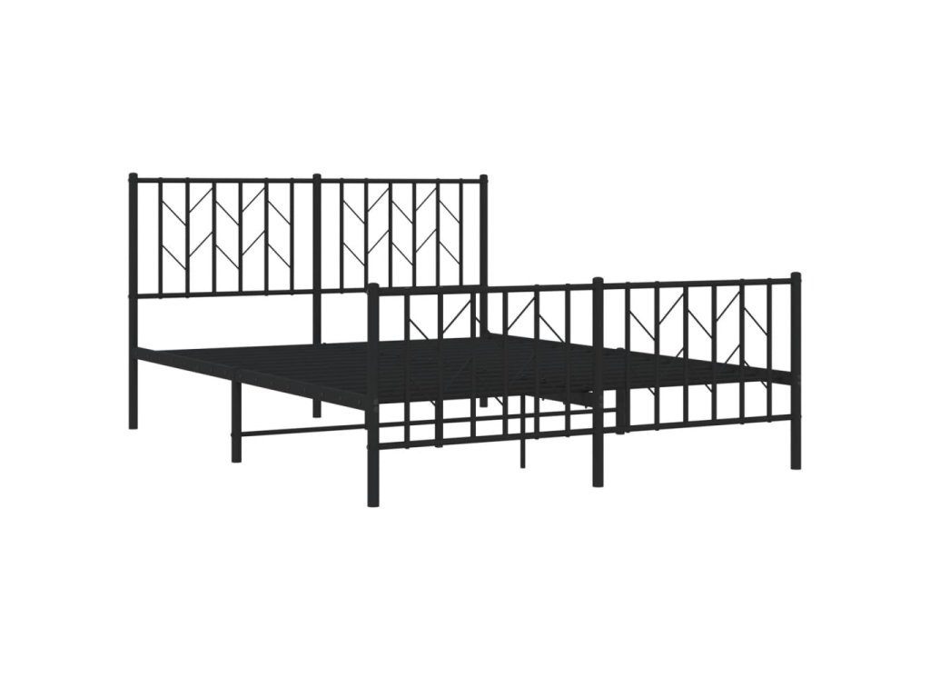 Kovový rám postele s hlavovým a nožním čelem černý 135 x 190 cm 374454