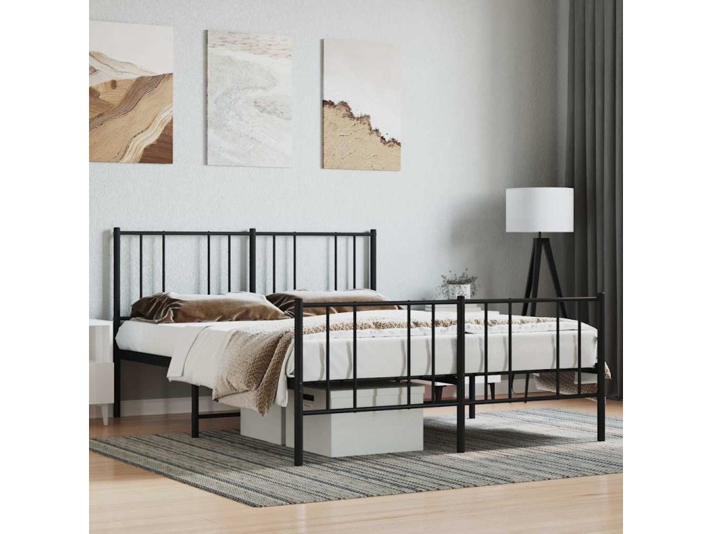 Kovový rám postele s hlavovým a nožním čelem černý 140 x 190 cm 352498