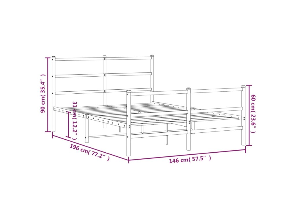 Kovový rám postele s hlavovým a nožním čelem černý 140 x 190 cm 355383