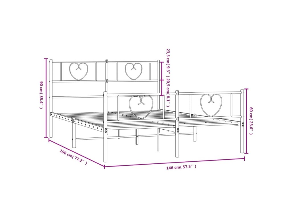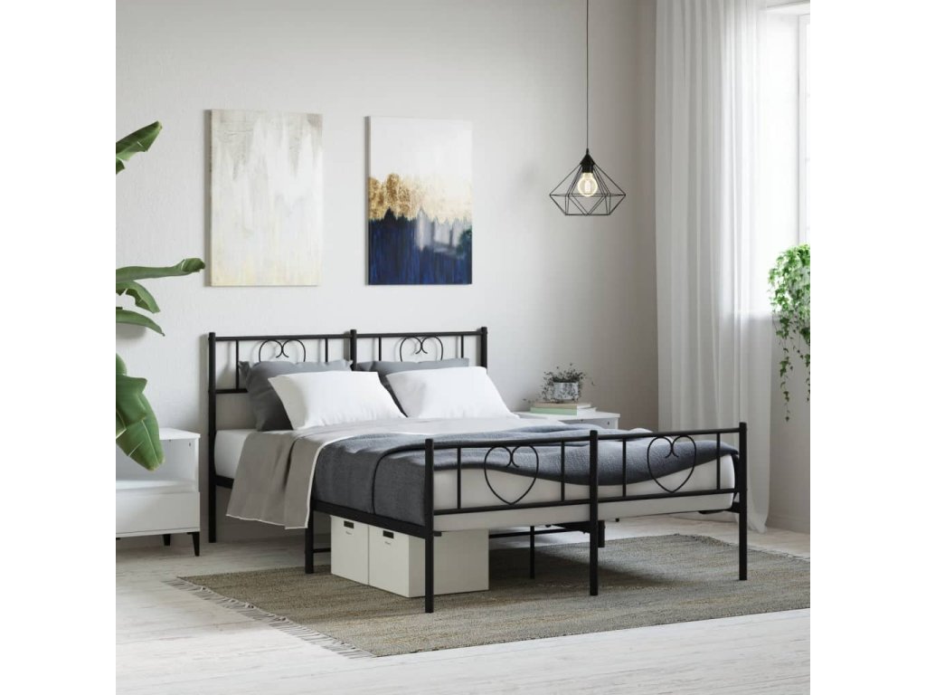 Kovový rám postele s hlavovým a nožním čelem černý 140 x 190 cm 355481