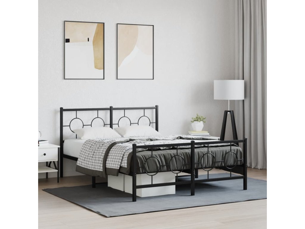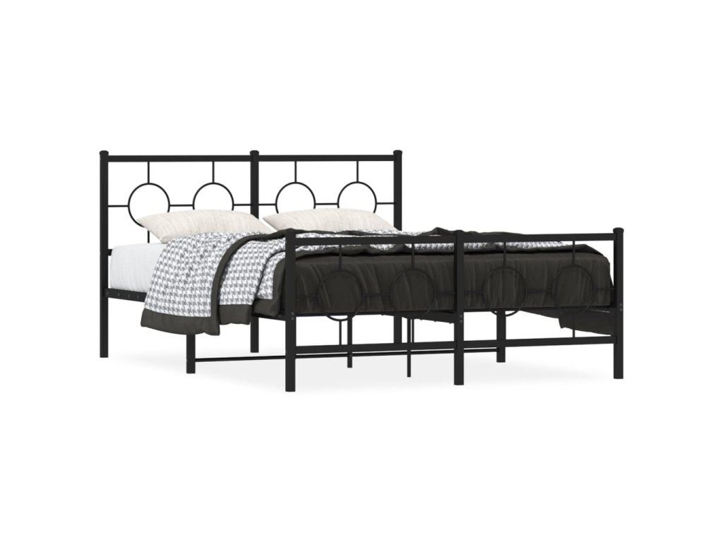 Kovový rám postele s hlavovým a nožním čelem černý 140 x 190 cm 376244