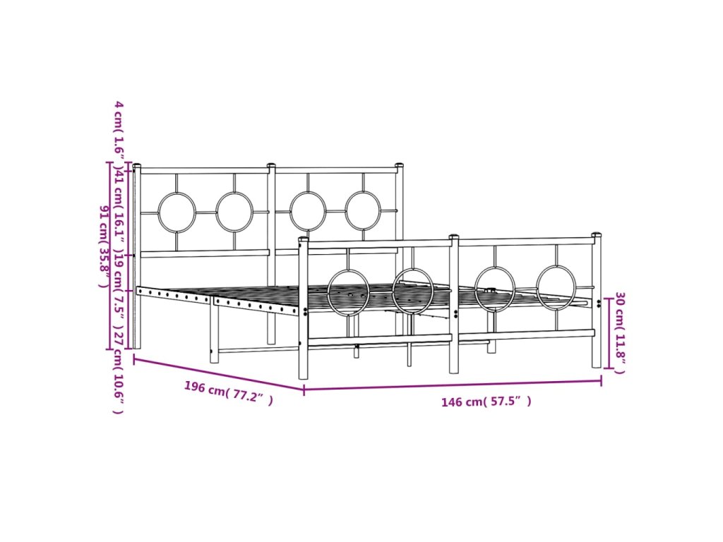 - Kovové lamely a nohy: Kovový rám postele je doplněn kovovými rošty a středovými nohami, které poskytují matraci tolik potřebnou oporu a prodyšnost.