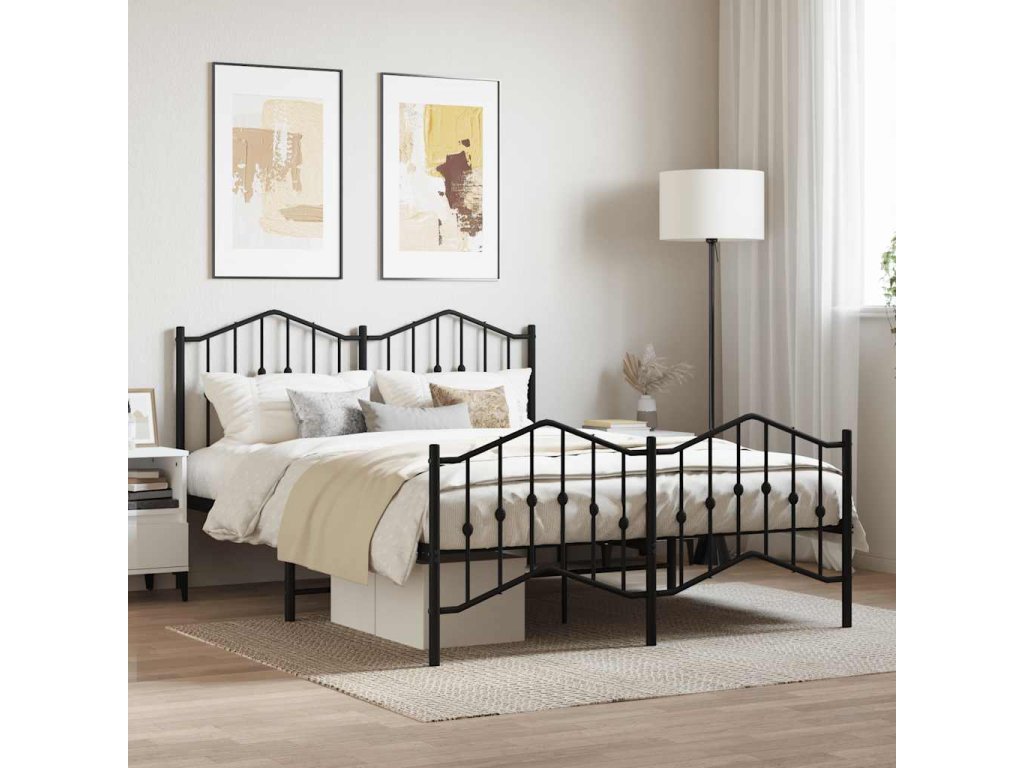 Kovový rám postele s hlavovým a nožním čelem černý 140 x 200 cm 373808