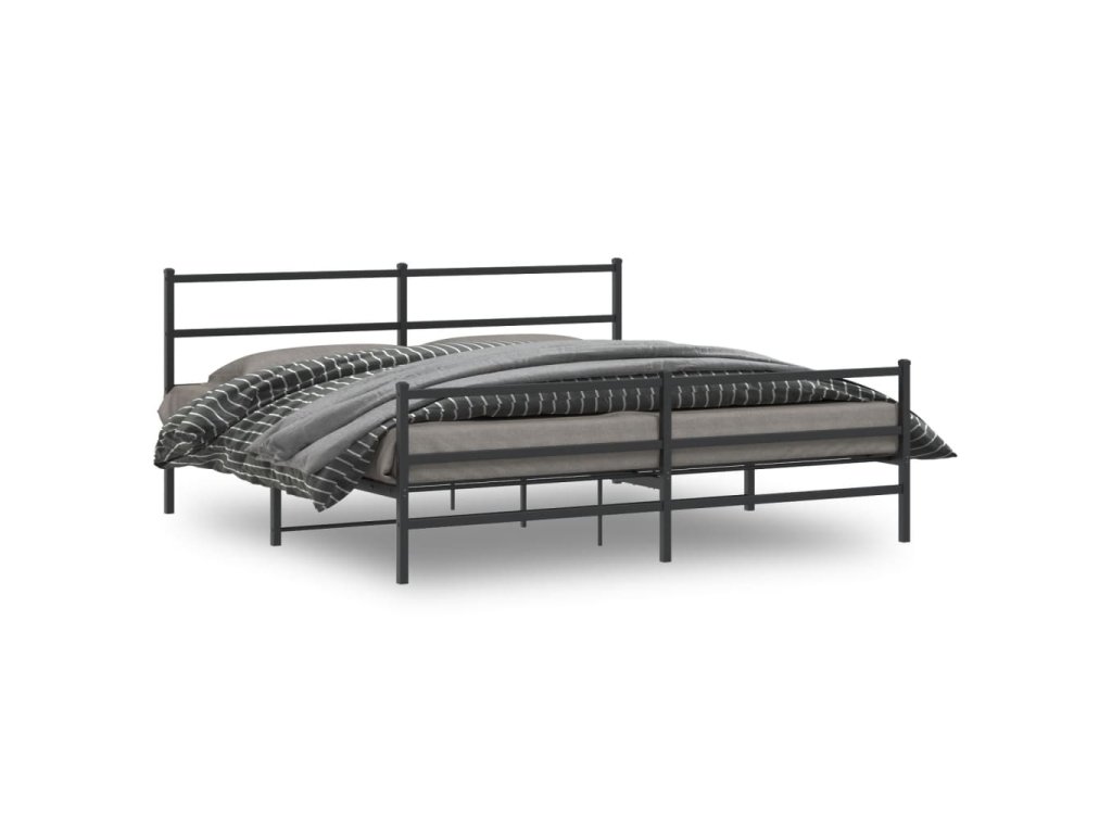 Kovový rám postele s hlavovým a nožním čelem černý 183 x 213 cm 355388