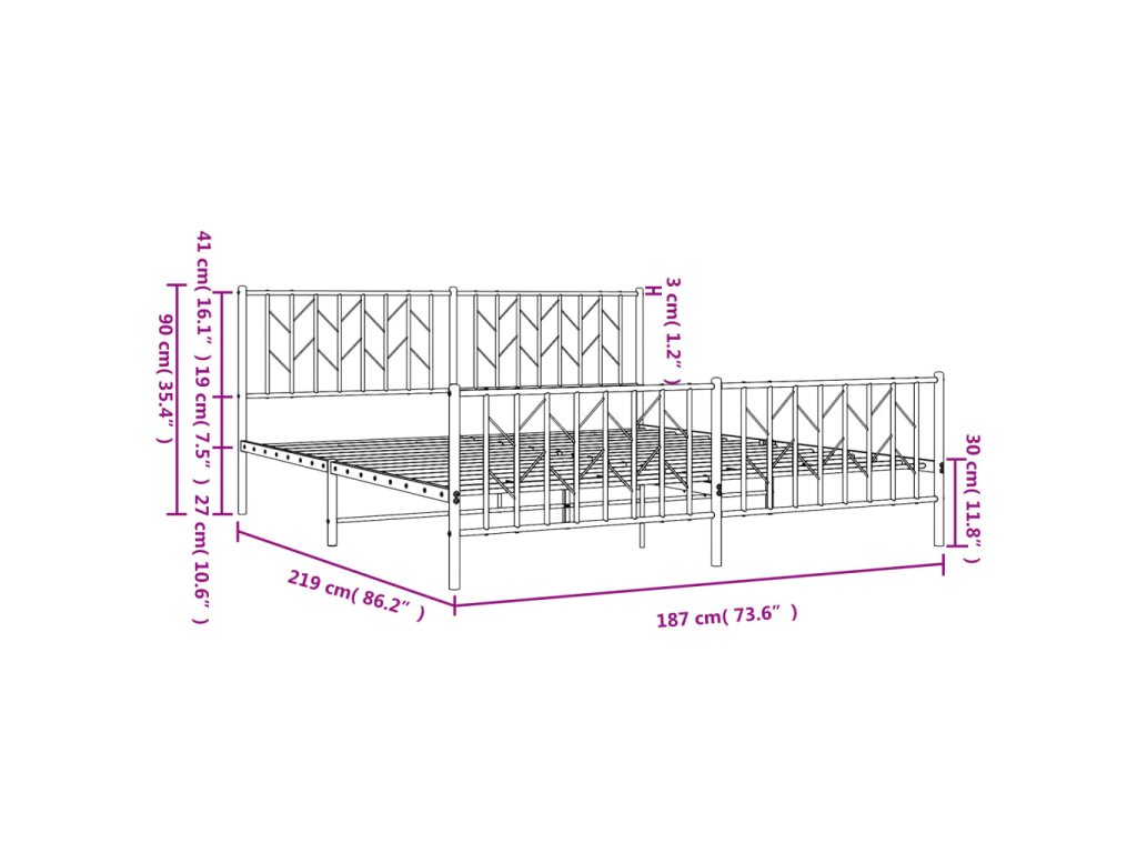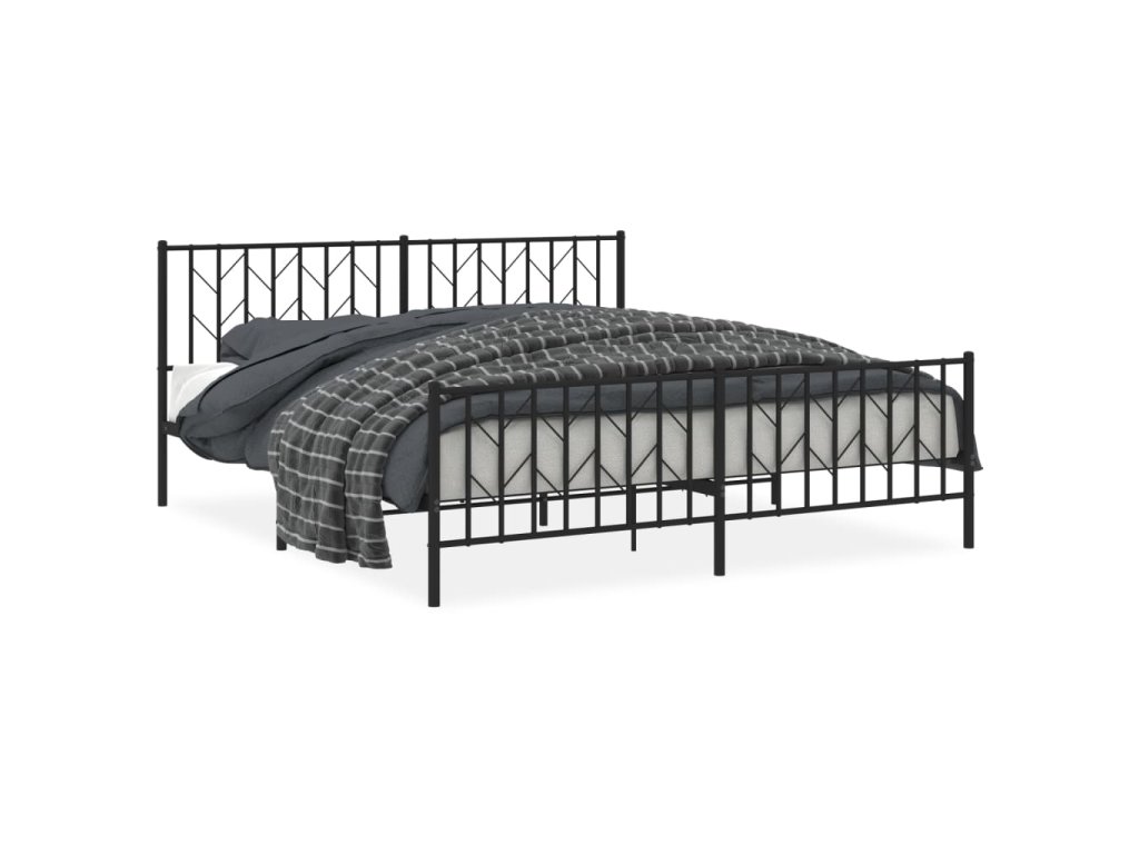 Kovový rám postele s hlavovým a nožním čelem černý 183 x 213 cm 374460