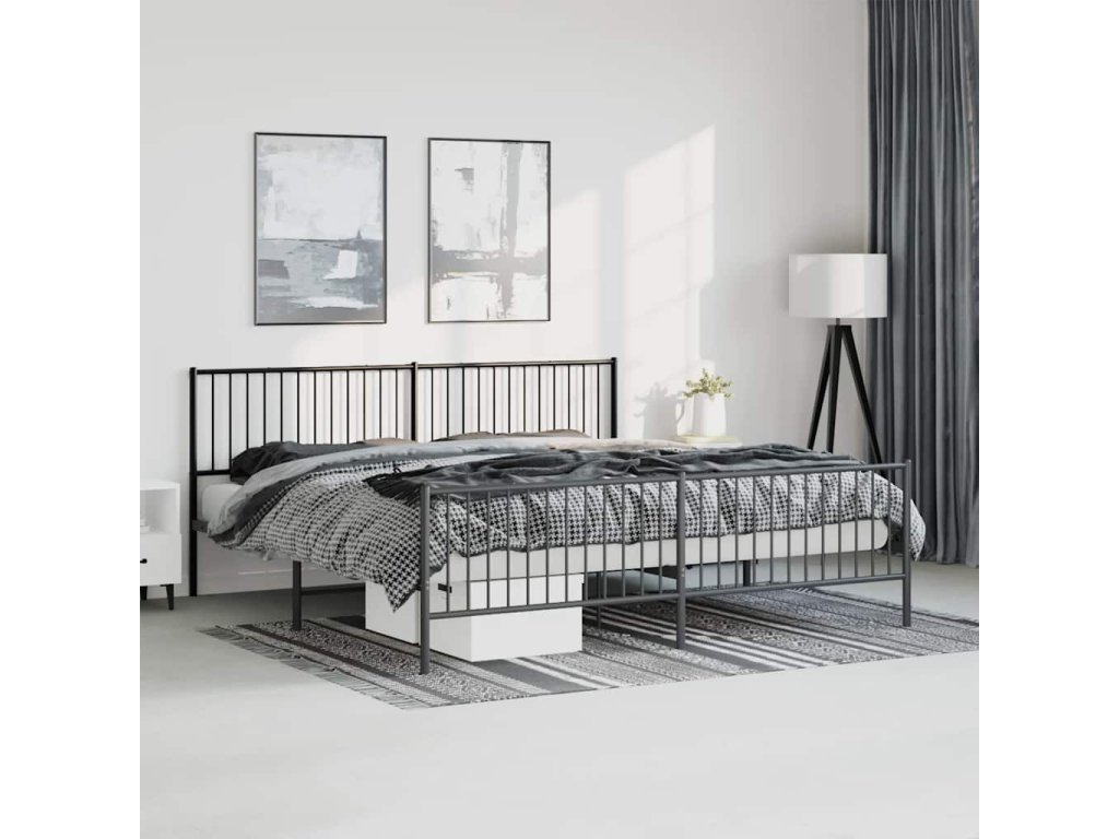 Kovový rám postele s hlavovým a nožním čelem černý 193 x 203 cm 350888