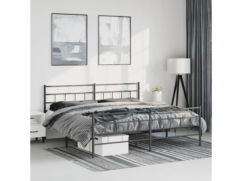 Kovový rám postele s hlavovým a nožním čelem černý 193 x 203 cm 355683