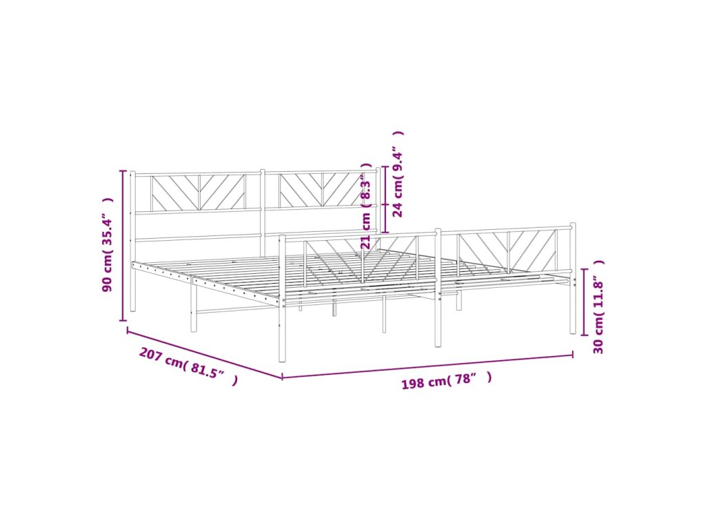 Kovový rám postele s hlavovým a nožním čelem černý 193 x 203 cm 372203