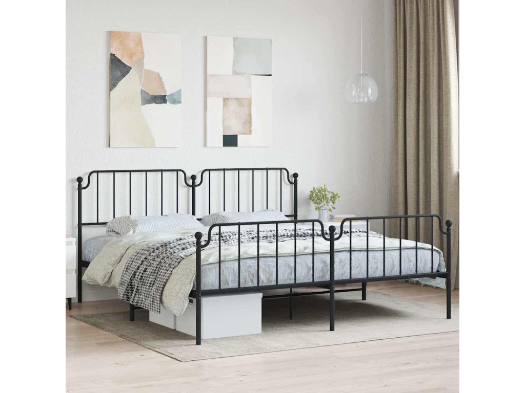 Kovový rám postele s hlavovým a nožním čelem černý 193 x 203 cm 373911