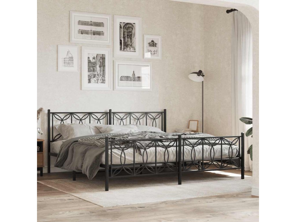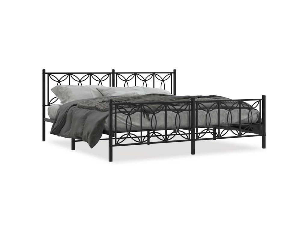 Kovový rám postele s hlavovým a nožním čelem černý 193 x 203 cm 376152