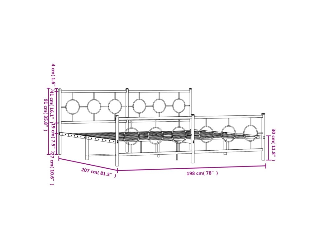 Kovový rám postele s hlavovým a nožním čelem černý 193 x 203 cm 376250