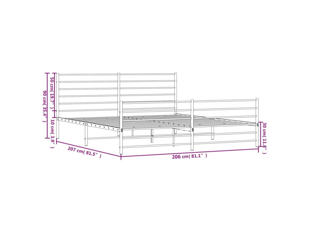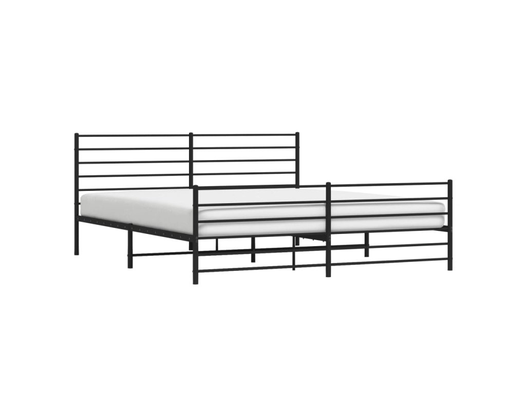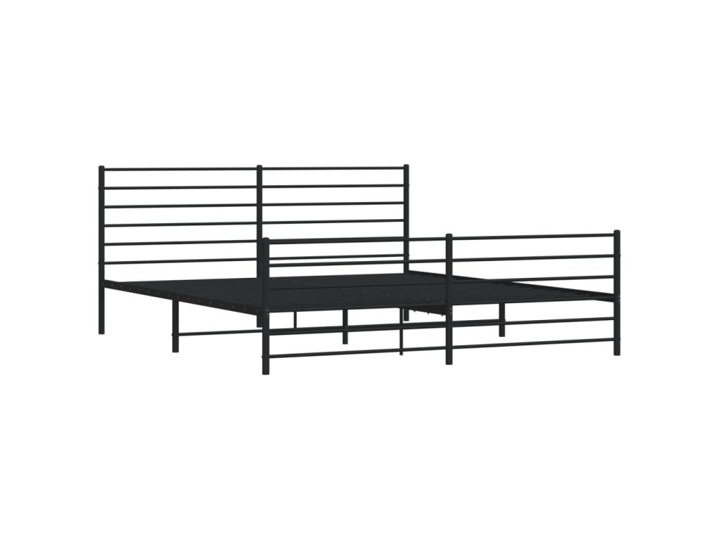 Kovový rám postele s hlavovým a nožním čelem černý 200 x 200 cm 352344