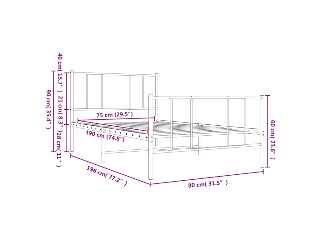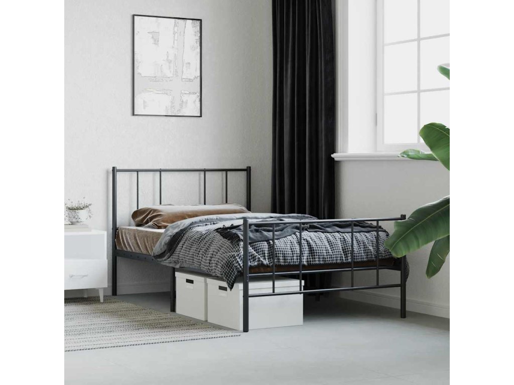 Kovový rám postele s hlavovým a nožním čelem černý 75 x 190 cm 352488