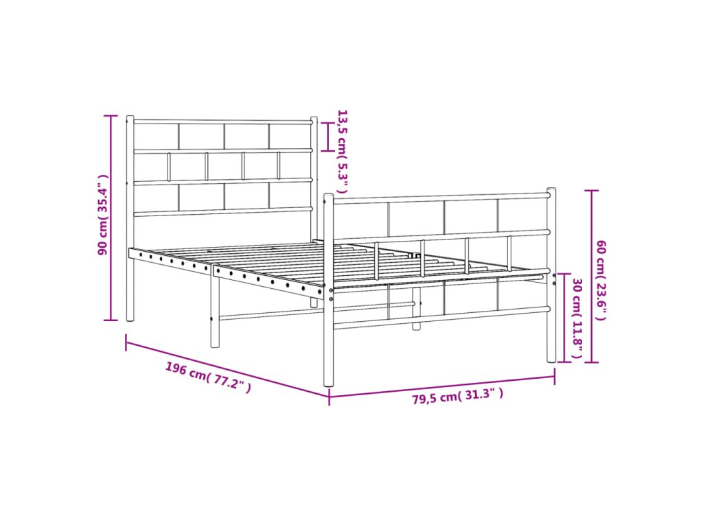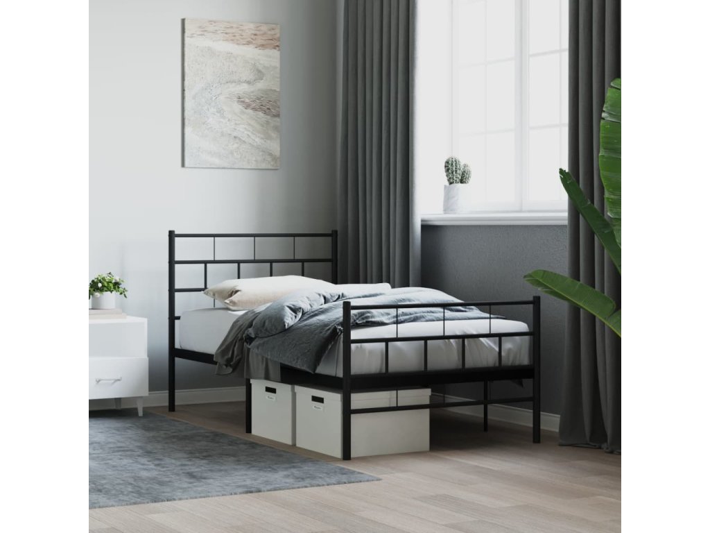 Kovový rám postele s hlavovým a nožním čelem černý 75 x 190 cm 355667