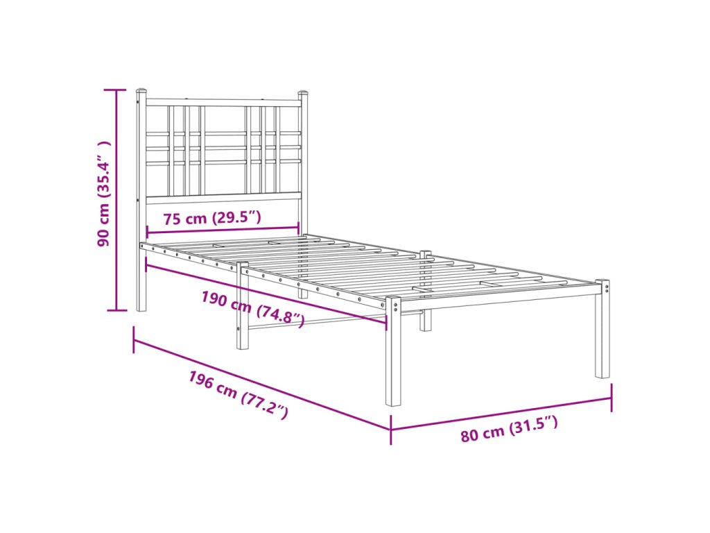 Kovový rám postele s hlavovým a nožním čelem černý 75 x 190 cm 376332