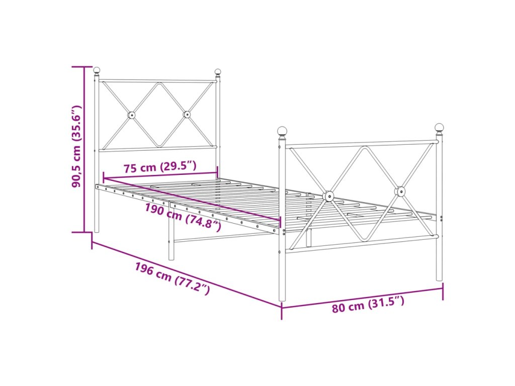 Kovový rám postele s hlavovým a nožním čelem černý 75 x 190 cm 376510