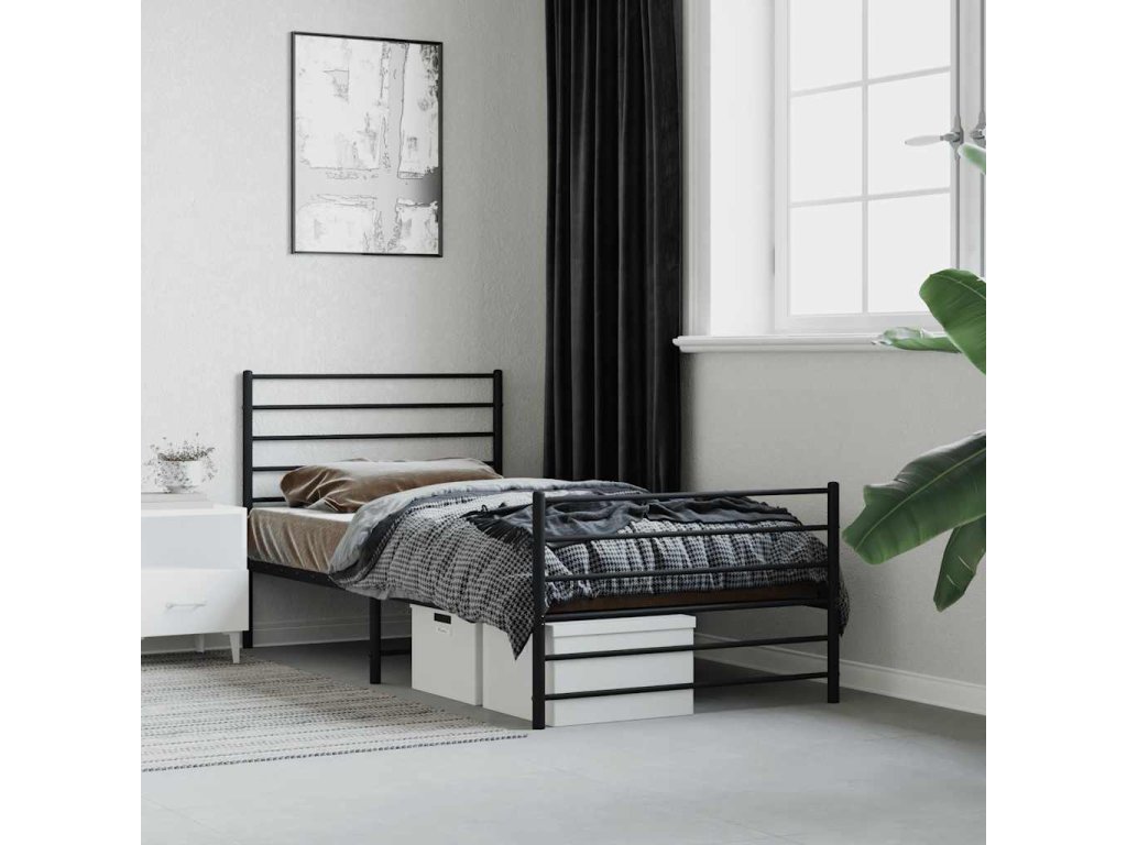 Kovový rám postele s hlavovým a nožním čelem černý 80 x 200 cm 352328