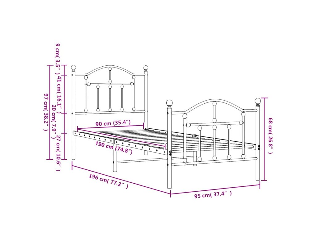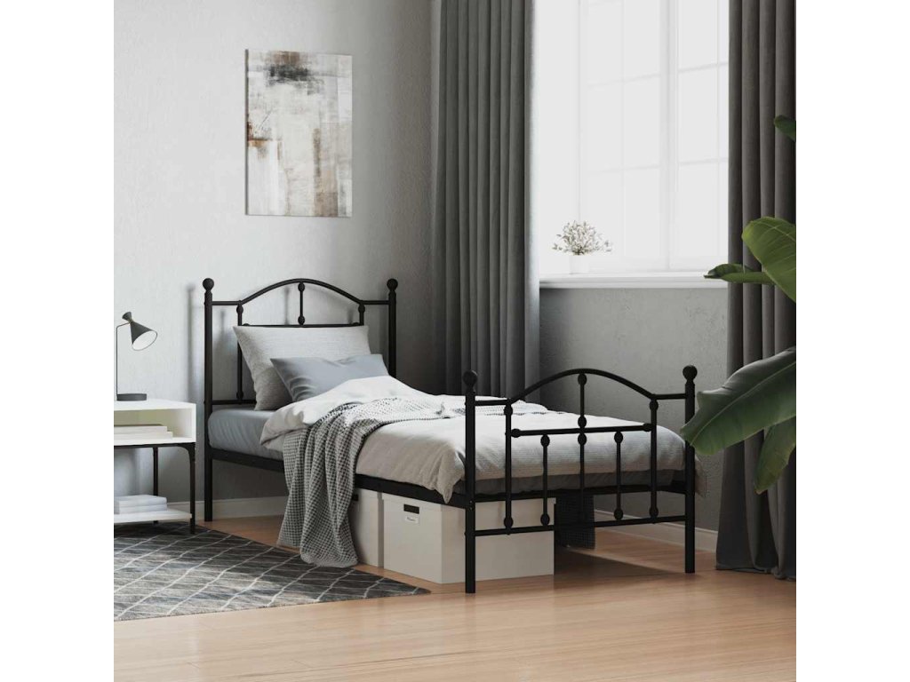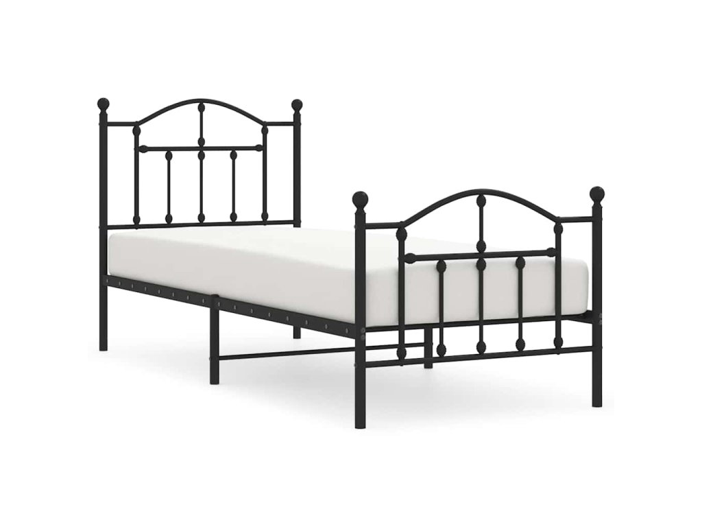 Kovový rám postele s hlavovým a nožním čelem černý 90 x 190 cm 353449