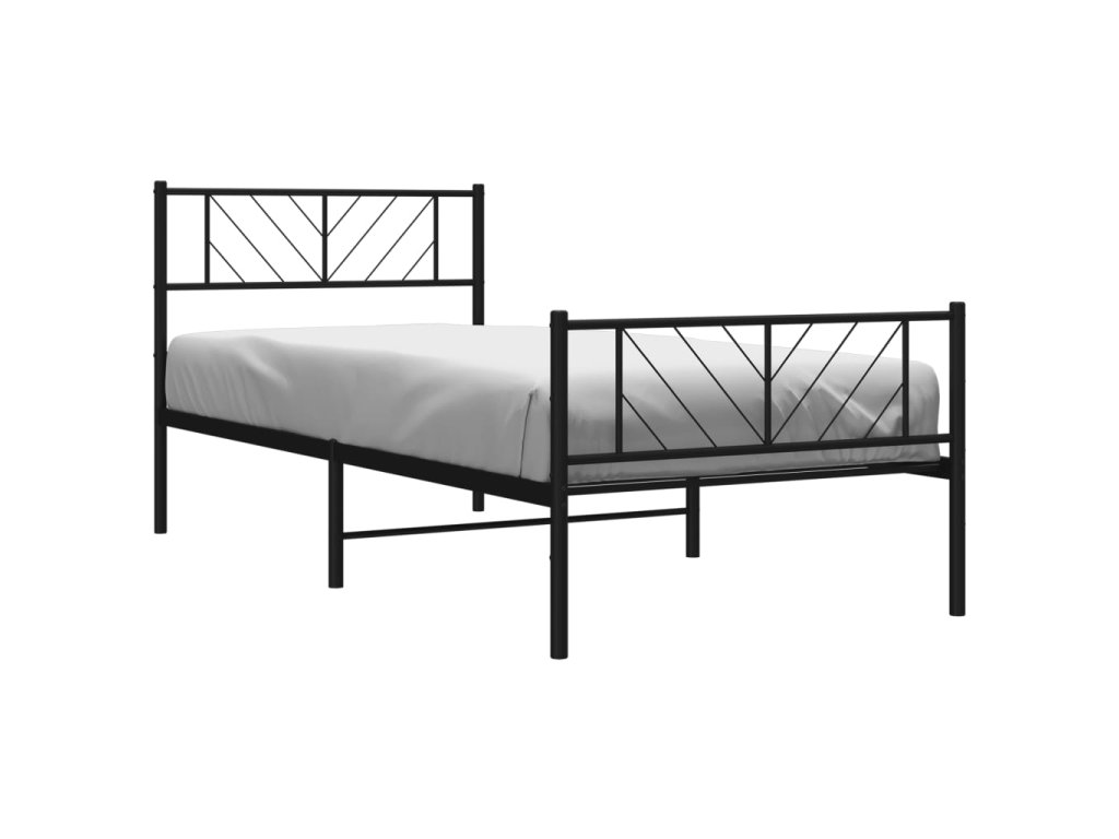 Kovový rám postele s hlavovým a nožním čelem černý 90 x 190 cm 372189