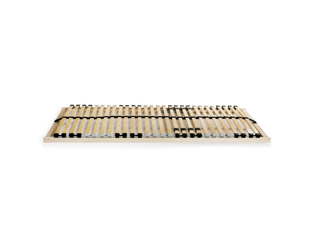 Rošt postele s rámem z masivního bukového dřeva a břízovými lamelami je robustní a odolný. Sedm komfortních zón poskytuje optimální podporu pro vaše tělo. Oba konce lamel jsou drženy na místě gumovými uzávěry SBS pro lepší stabilitu celé konstrukce. S pomocí 4 nastavitelných dvojitých lamel ve středové zóně si můžete uzpůsobit pevnost roštu svým potřebám. Montáž je snadná.