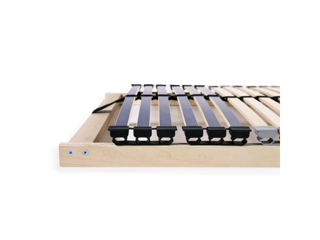 Rošt postele s rámem z masivního bukového dřeva a s břízovými lamelami je robustní a odolný. 7 komfortních zón poskytuje optimální podporu pro vaše tělo. Pro lepší stabilitu celé konstrukce drží oba konce lamel na místě gumové uzávěry SBS. S pomocí 6 nastavitelných dvojitých lamel ve středové zóně si můžete pevnost roštu uzpůsobit podle svých potřeb. Montáž je snadná.