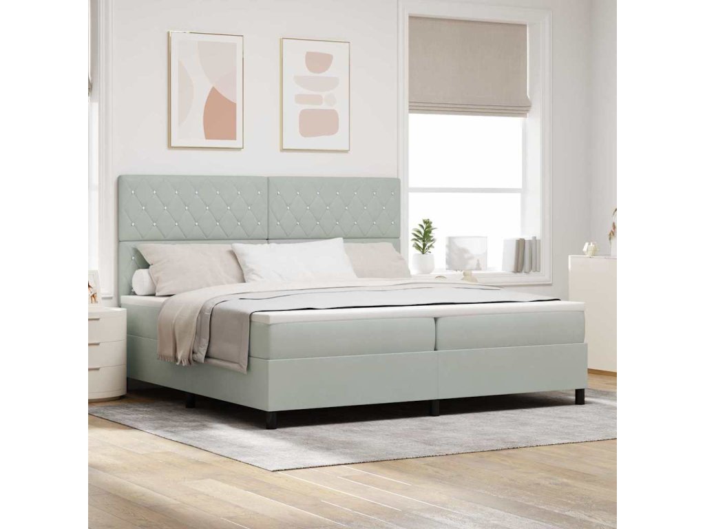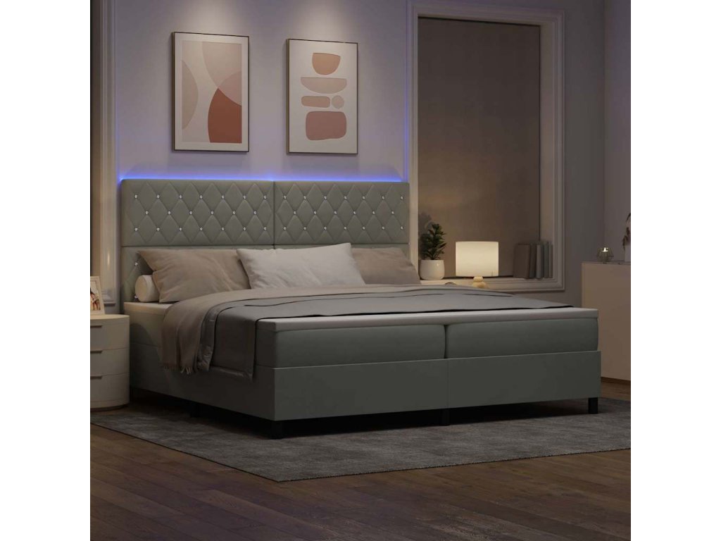 LED box pružinová postel s čelo Světle šedá 200 x 200 cm textil 3343268